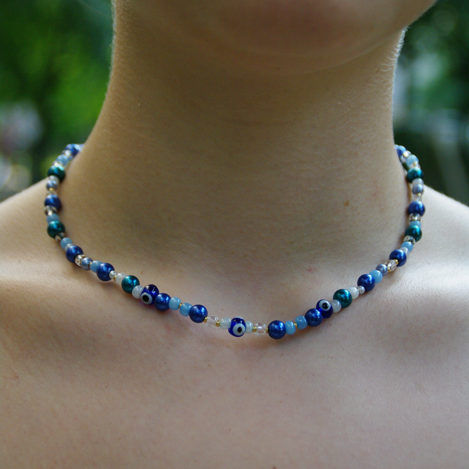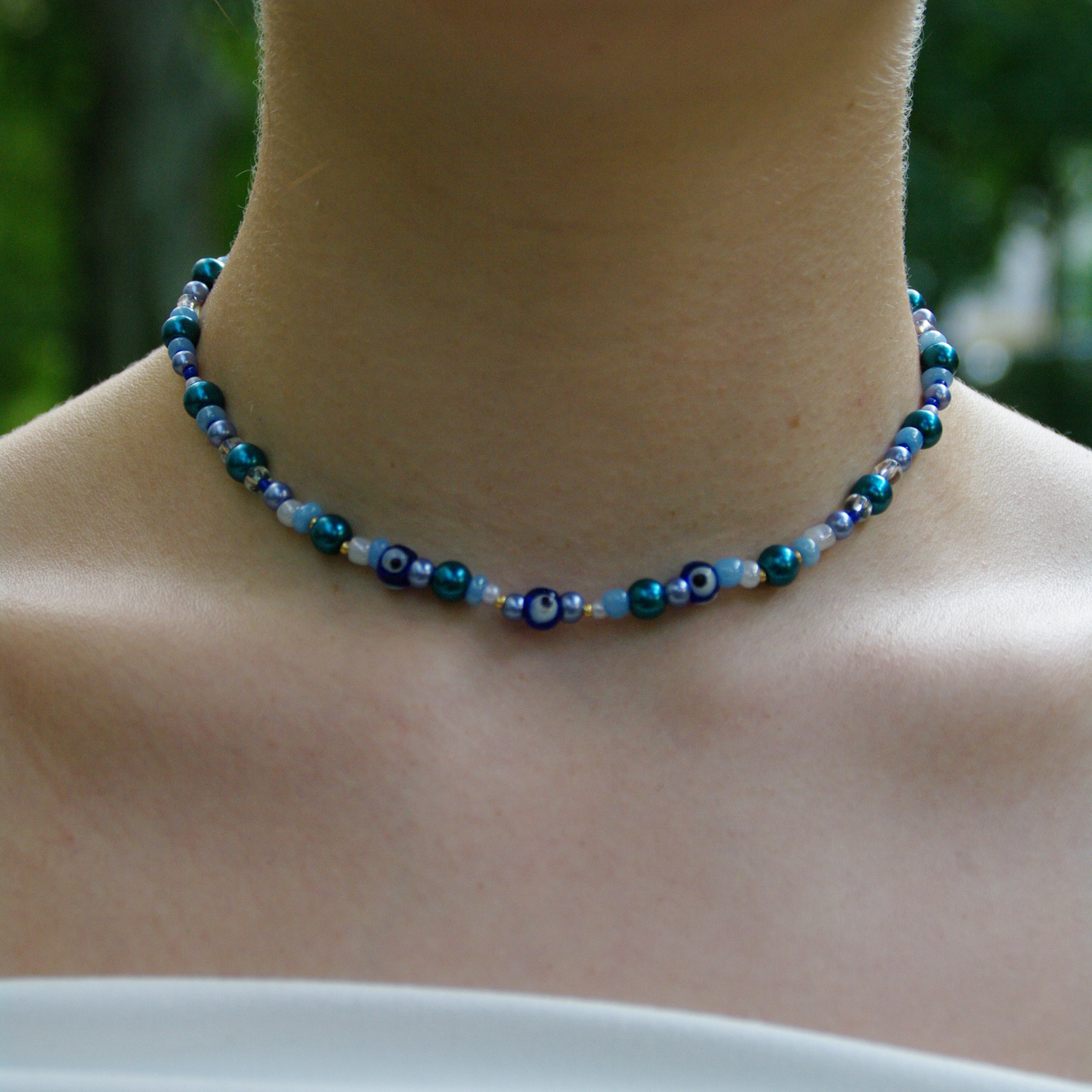 This necklace exudes a calming, mystical charm, with its gentle green and blue tones creating a subtle yet captivating elegance.