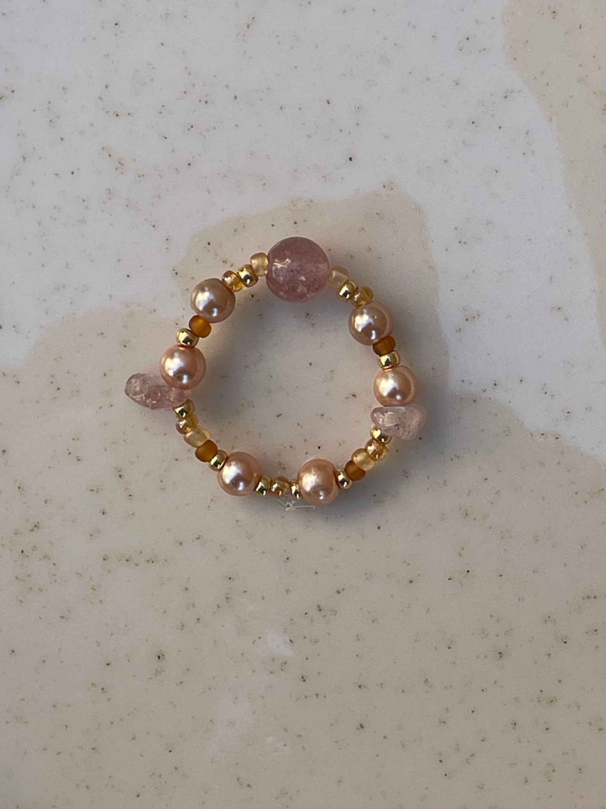 Strawberry quartz ring with golden-pink and beige hues, the stone of love and delicacy.