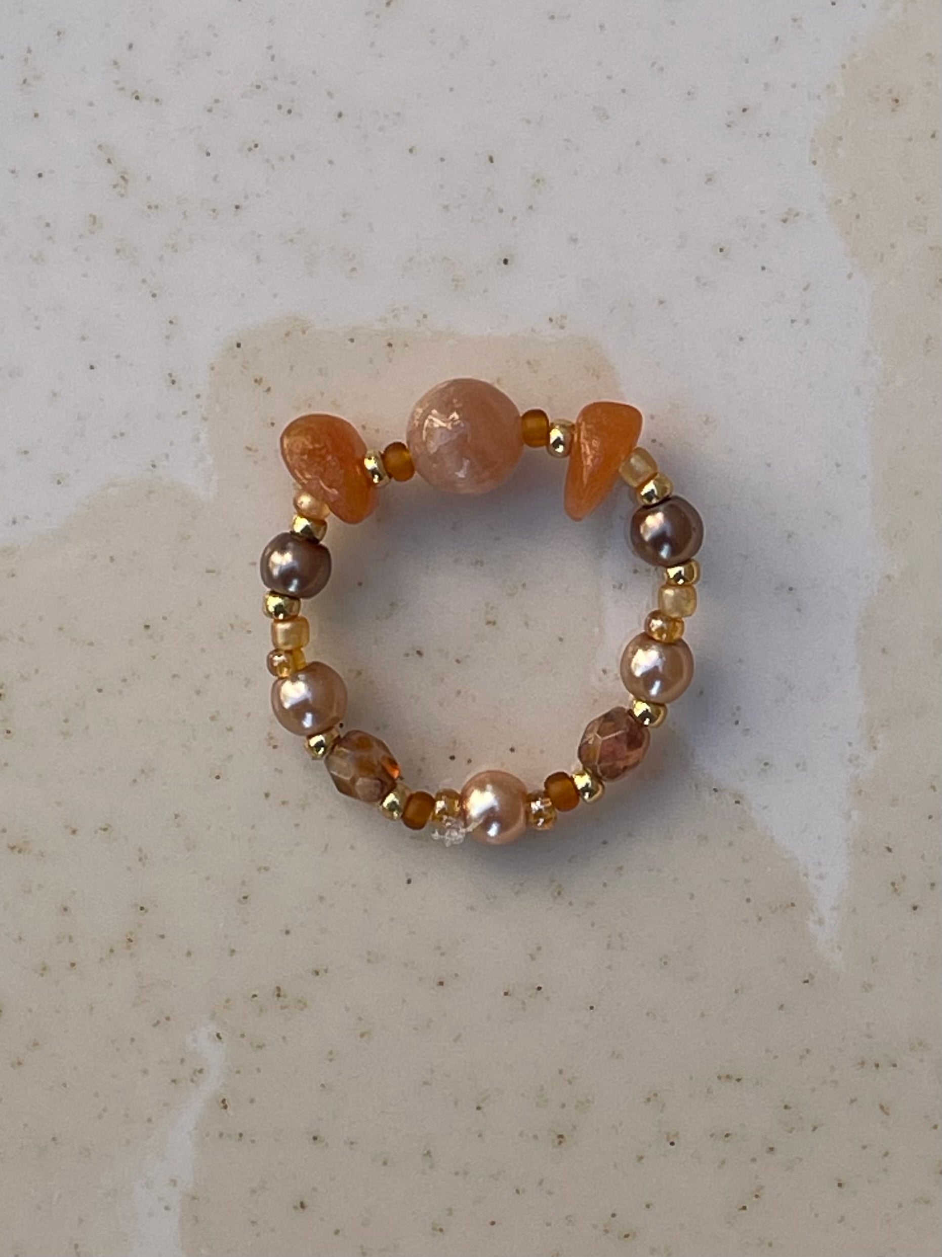 Carnelian and moonstone ring in beige-orange-purple tones, radiating courage and calm.